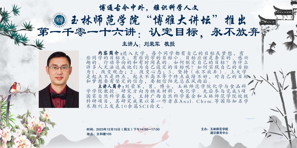 内容简介:进入大学,每个同学都有自己的目标或梦想,有些同学的目标大,有些同学的目标小。目标应该是务实的、感兴趣的、行动导向的和有时间表的。如何制定自己的目标?为什么许多人无法达成他们为自己设定的目标呢?如何实现自己的目标:1、改变观念;2、改变心态;3、坚持(永不放弃)。上大学是起点不是终点,起点不高不等于终点成绩不好,对自己的目标和梦想要有坚定的信念,要相信阳光总在风雨后。
