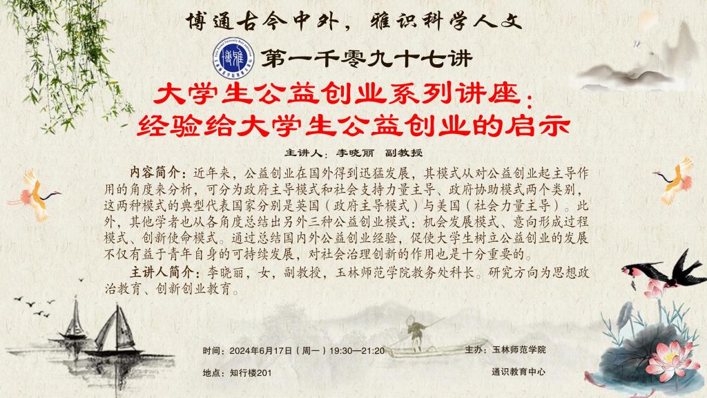 预告:【博雅大讲坛】1097期——大学生公益创业系列讲座:经验给大学生公益创业的启示