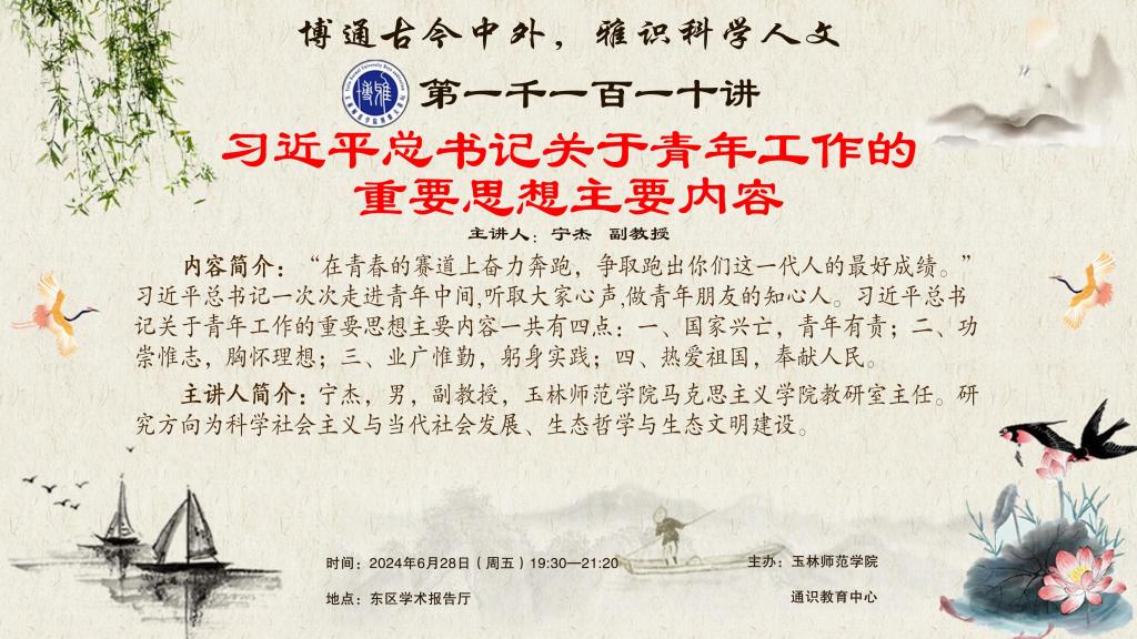 预告:【博雅大讲坛】1110期——习近平总书记关于青年工作的重要思想主要内容