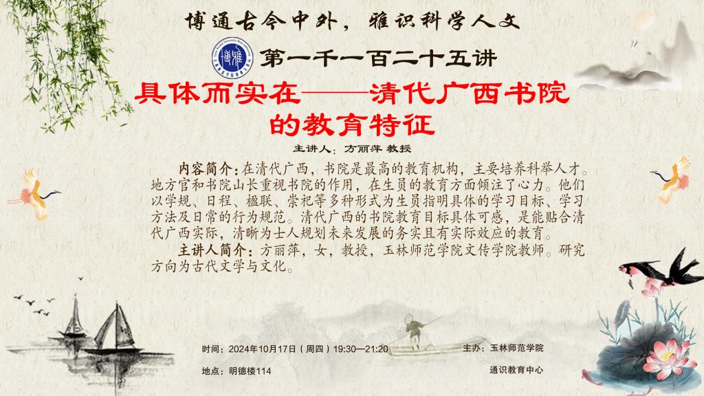 预告:【博雅大讲坛】1125期——具体而实在——清代广西书院的教育特征