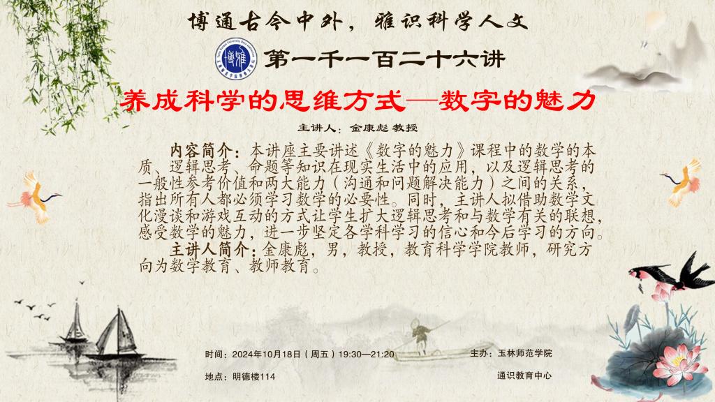 预告:【博雅大讲坛】1126期——养成科学的思维方式——数字的魅力