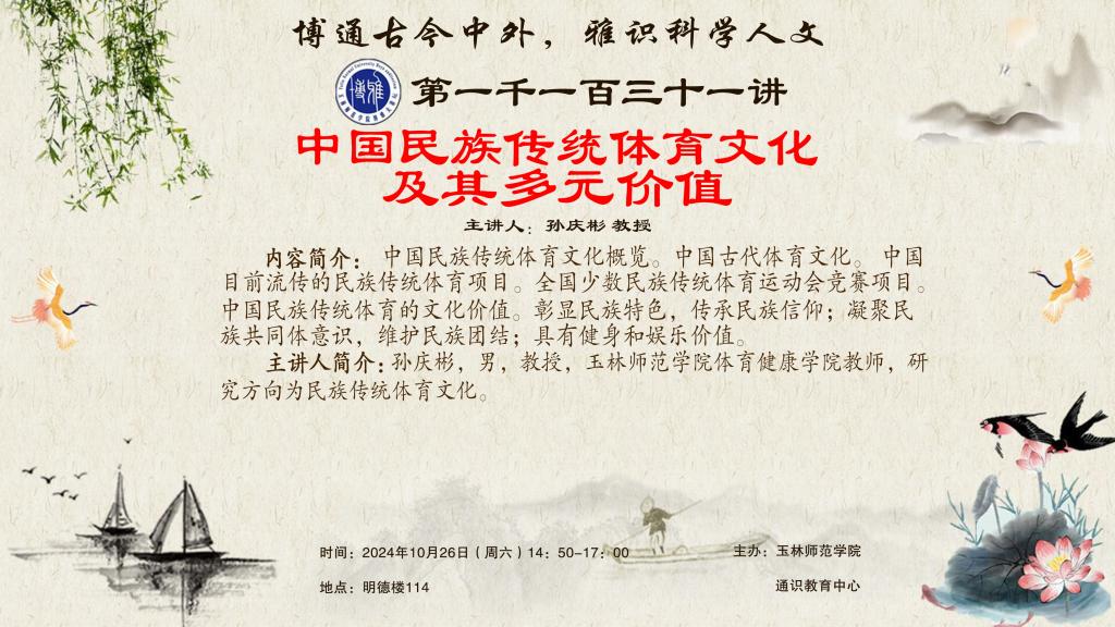 内容简介:中国民族传统体育文化概览。中国古代体育文化。中国目前流传的民族传统体育项目。全国少数民族传统体育运动会竞赛项目。中国民族传统体育的文化价值。彰显民族特色,传承民族信仰;凝聚民族共同体意识,维护民族团结;具有健身和娱乐价值。