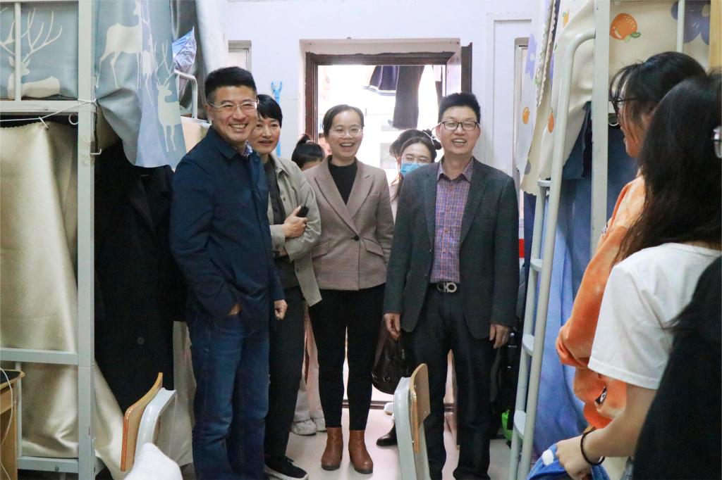 为进一步了解学生返校情况,2月26日下午,文学与传媒学院党委书记邱冠,院长肖国栋带领学院领导班子成员、班主任、辅导员走访兰园4栋学院学生宿舍,关心学生的生活情况。