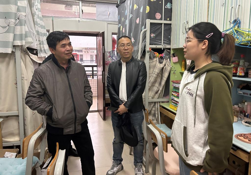 在走访过程中,方琨一行与学生们亲切交谈,并叮嘱学生们在新的学期要尽快调整作息,准备好开启新学期的学习,以积极向上的姿态,投入到新学期的学习和生活中来。领导教师们主动了解学生近期的生活状况,亲切地向学生们询问考研复习、实习就业、论文撰写等方面的情况,并耐心地给予指导与建议,鼓励他们要放松心态,全力以赴。