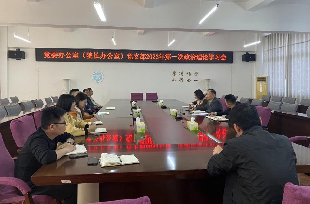 3月3日上午,党委办公室(院长办公室)党支部在行政楼第五会议室召开2023年第一次政治理论学习会,党委办公室(院长办公室)党支部书记唐彰新主持会议。