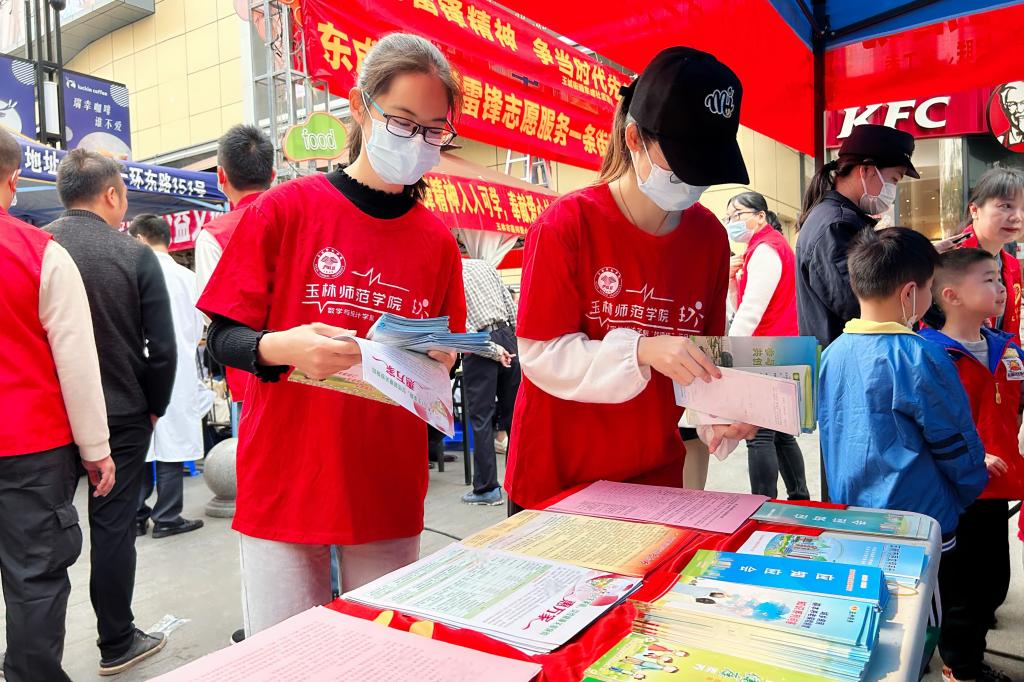 为深入学习宣传贯彻党的二十大精神,贯彻落实习近平总书记近日对深入开展学雷锋活动作出的重要指示精神,3月5日,第60个“学雷锋纪念日”之际,数学与统计学院联合玉城街道东成社区、玉林市城市管理监督局、玉林市中心血站、玉州区人民检察院、中国邮政储蓄银行玉林市人民东路营业所、码上素食、海音送茶志愿服务队等企事业单位、爱心团体在东成社区金城中心B馆门口开展“弘扬雷锋精神、聚力文明实践、共建和谐社区”学雷锋志愿服务一条街活动,突出“接地气、冒热气、强底气”,让弘扬雷锋精神入脑入心、见行见效。