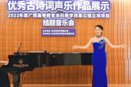 为推动玉林师范学院艺术实践活动的开展,积极践行中国传统文化,增强大学生的文化自信。3月25日,音乐舞蹈学院在珠江钢琴专卖店(玉林总店)举办优秀古诗词声乐作品展示音乐会。该院副院长蒋艳、韦嘉出席本次音乐会。