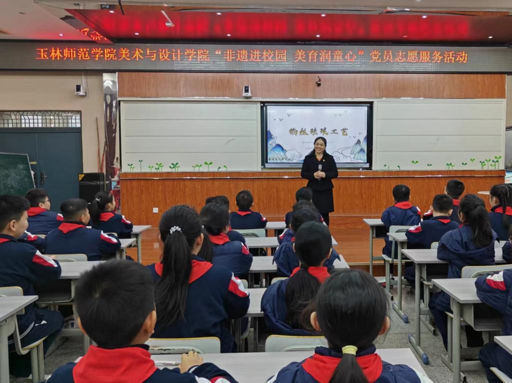 为深入贯彻党的二十大精神,进一步弘扬中华民族优秀传统文化,推进非物质文化遗产的传承和发展,3月29日下午,美术与设计学院党委书记黄培英、副院长邱冬梅、专职组织员带领学院“艺心向党”师生党员志愿者代表赴玉东小学开展“非遗进校园 美育润童心”党员志愿服务活动。