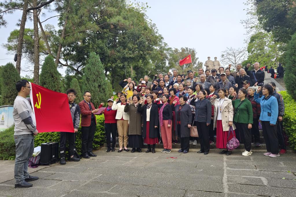 活动分两个部分进行。第一部分由人事处党委书记蒋丽萍带领全体党员瞻仰李明瑞、俞作豫烈士雕像,缅怀先烈,致敬英雄,聆听英雄事迹,表达革命先烈的深刻悼念和无限敬仰。全体党员在雕像下重温入党誓词、唱红歌。在纪念馆中,老党员们缅怀历史,重温初心,感悟信仰的力量、使命的力量,学习和领会勇于战胜各种艰难险阻的革命精神。