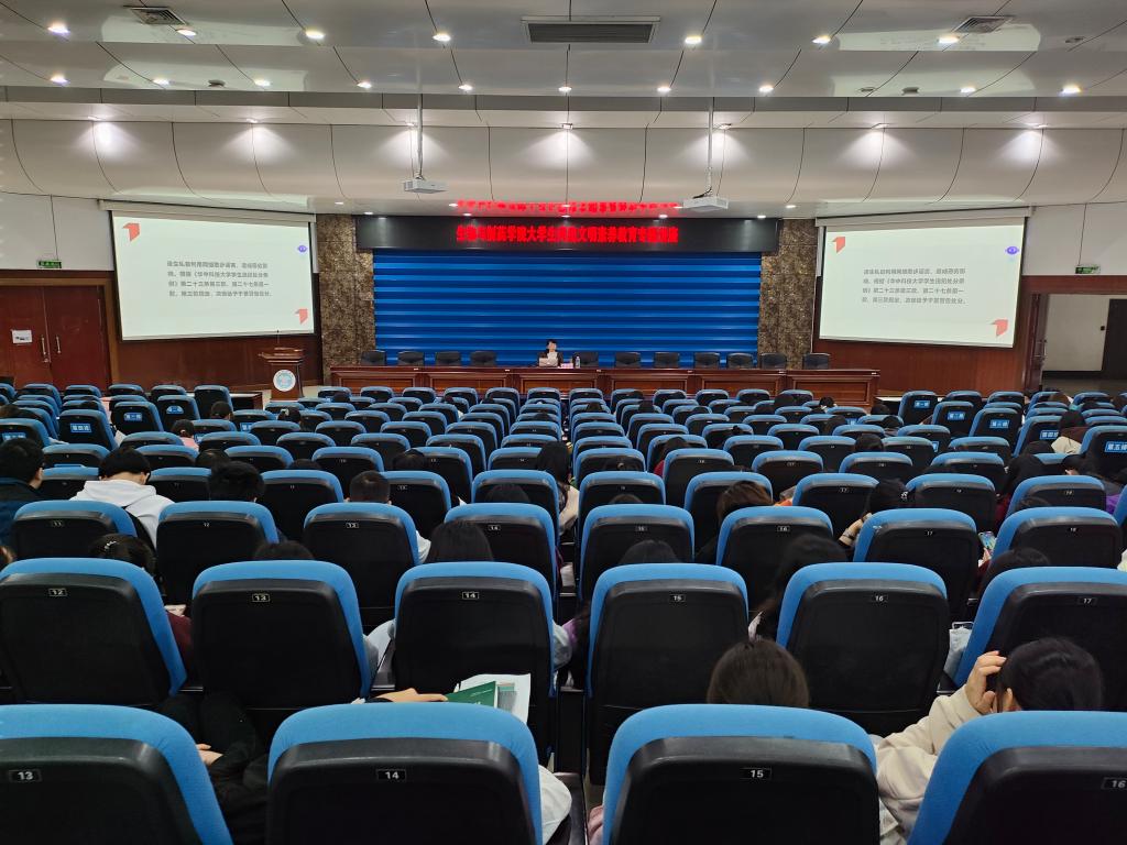 4月9日上午,生物与制药学院于我校东校区学术报告厅举办大学生网络文明素养教育专题讲座。本次讲座由该院党委书记李桂芬主讲,该院2022级全体学生参加此次活动。