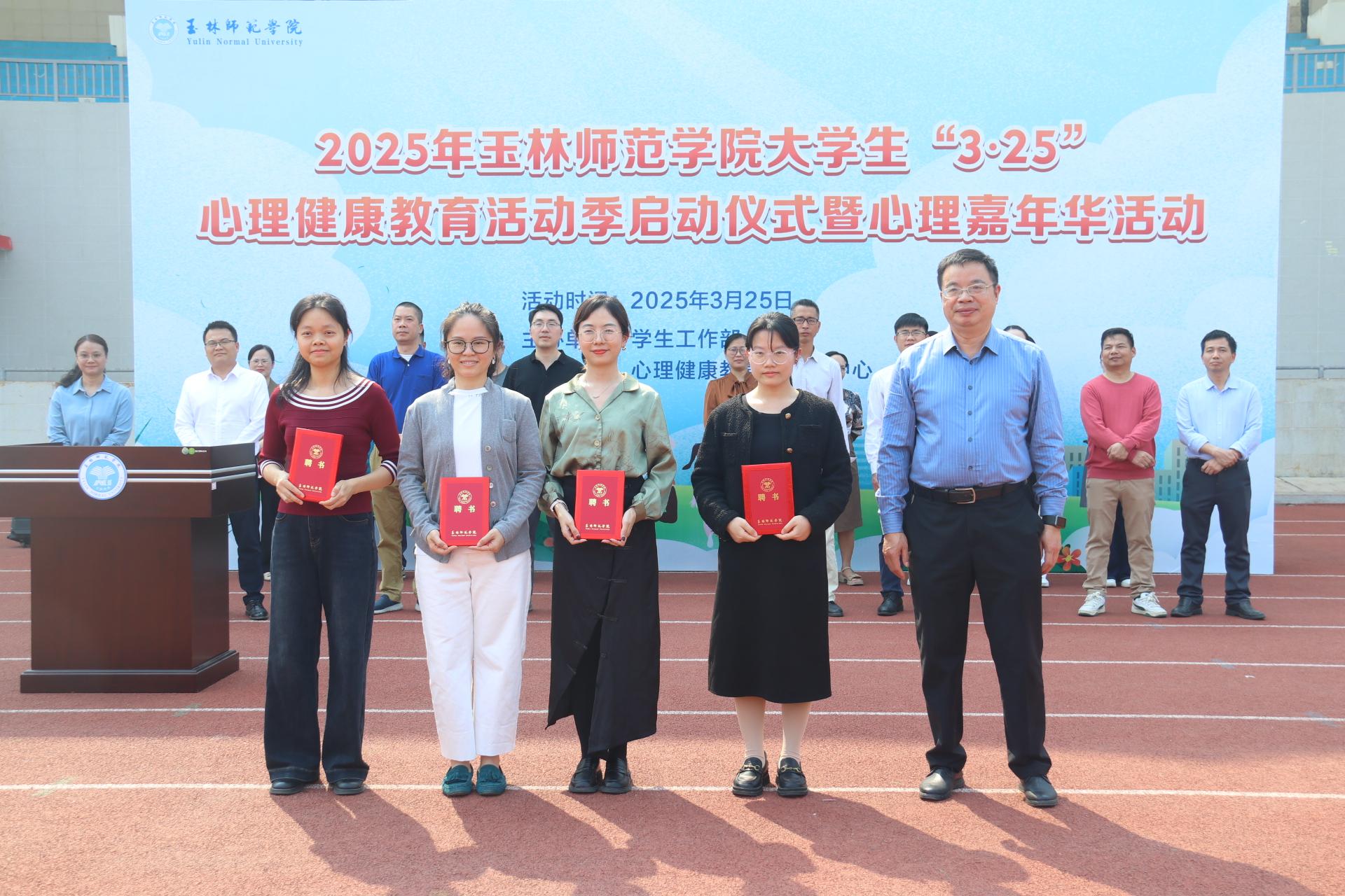 韦广雄为获得2024年玉林师范学院大学生心理知识短视频大赛一等奖的学生团队颁发了荣誉证书,并为2025年心理健康教育兼职教师颁发了聘书。学生工作部(处)介绍了2025年大学生“3·25”心理健康教育活动季系列活动的具体安排。
