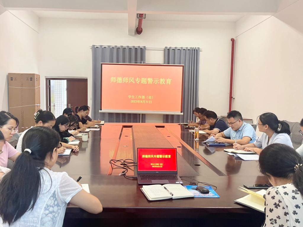 为进一步加强师德师风建设,提高广大教师的思想政治素养和职业道德素养,8月31日,学生工作部(处)在东校区新民楼D113会议室召开师德师风专题警示会。部门全体党员干部、职工参会,会议由学生工作部(处)部(处)长杨潇主持。