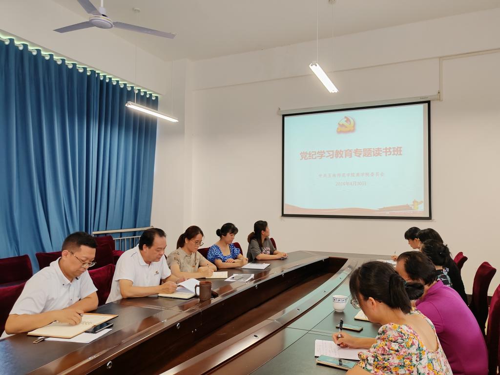 4月30日,商学院于我校东校区清源楼A-217会议室举办为期一天的党纪学习教育专题读书班。该院全体党委委员、领导班子成员、组织员、党支部书记参加学习。